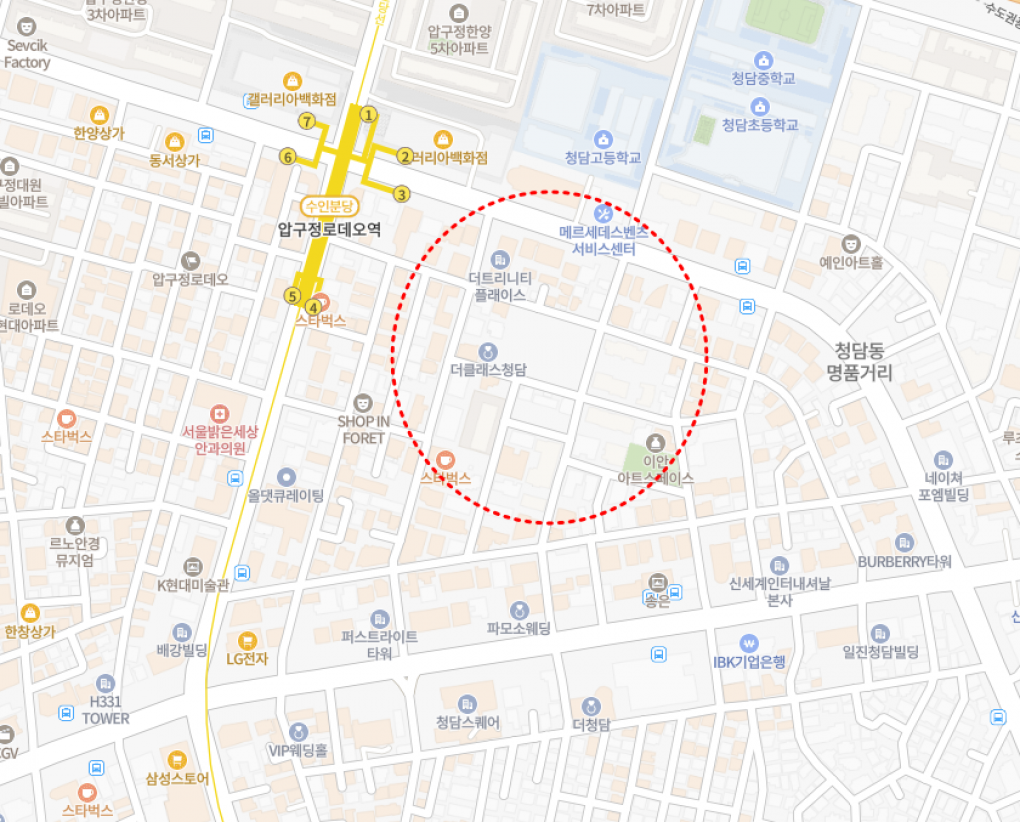 - 압구정로데오역에서 도보 3분거리에 위치